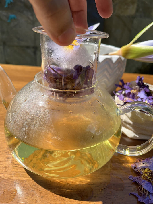 Blue lotus tea has a subtle taste with both fruity and floral notes.